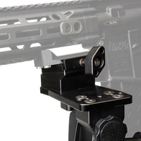 - Offset grip design allows for magazine changes with the rifle mounted and provides easy manipulation